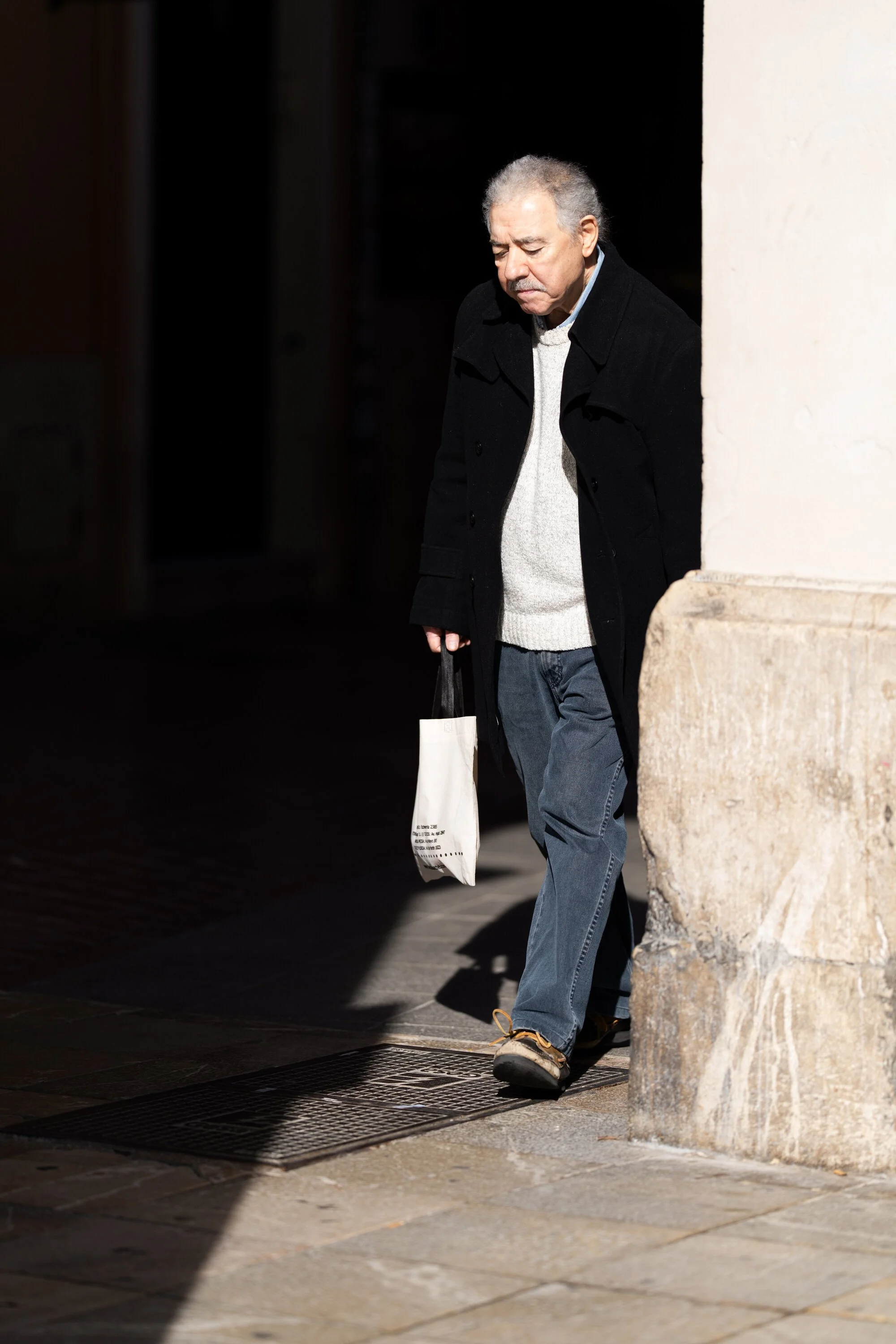 the old man steps from shadow into light. with the sony's fast af, i could capture multiple variations.