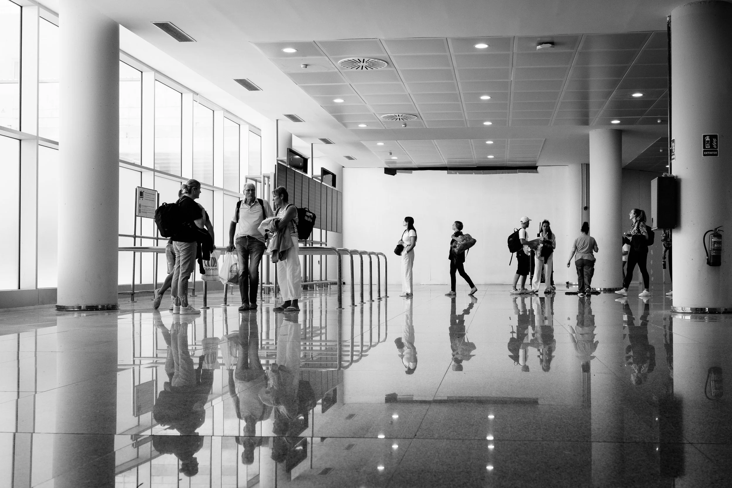 finally, after arriving at palma's airport, i took a quick pause to capture some of my beloved airport photos. this is where the less obtrusive equipment really paid off. no one gave me a second look as i sat on the floor, waiting for a scene to unfold.